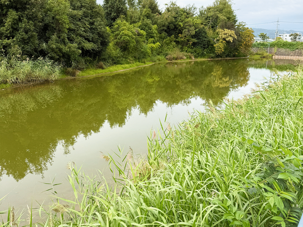 写真は周りの植物が元気で水が緑に見えますが、直接見ると透明を維持できていました。